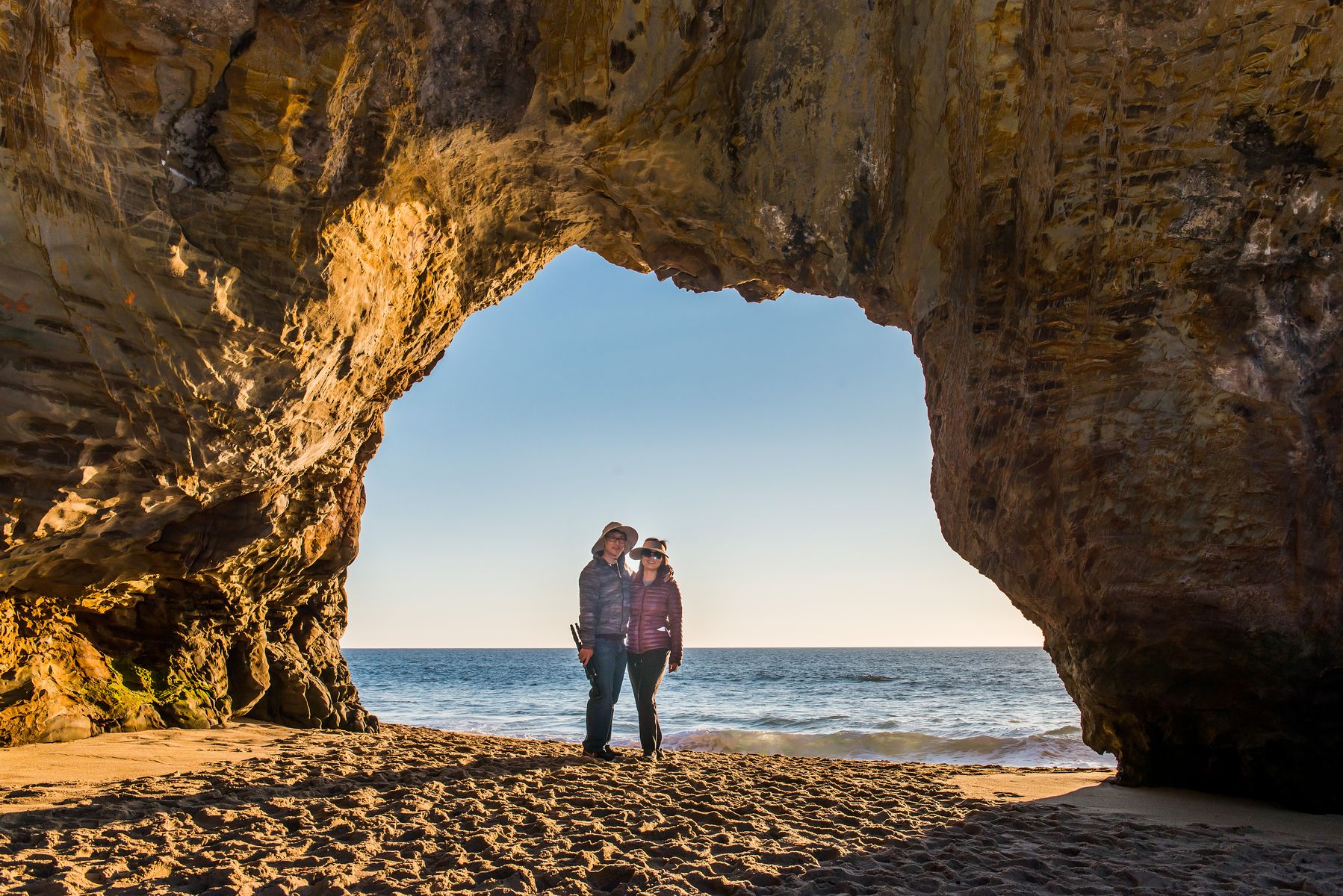 해변으로 내려가면 절벽에 큰 구멍이 하나 나 있습니다. 이곳을 알려주신 고마운 부부께 답례(?)로 사진 한장 😁. (1세기만에 SB900 speedlight 챙겨서 나갔는데 역시 광량이 택도 없이 모자라네. Profoto B1X 500 급 정도면 되려나? 😜 )